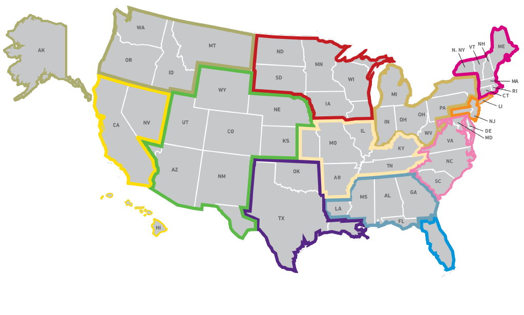 Texas Rocky Mountain Golden State Pacific Northwest Pacific Northwest Upper Midwest Gateway Gulf Coast Florida Mid-Atlantic New England New York Golden State Great Lakes